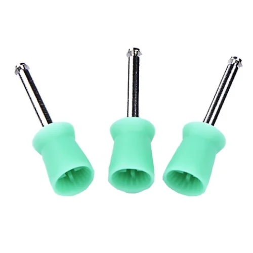 Prophy Cups – Green (Also known as prophy paste cups) are used to aid in selective stain removal and interproximal cleaning with less pressure and operator fatigue.