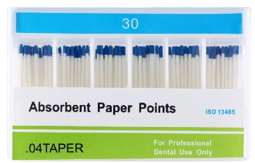 Sterile paper points 04 Taper are hand rolled sterilized endodontic paper points used in root canal therapy to remove moisture from the root canal or to introduce medicaments.